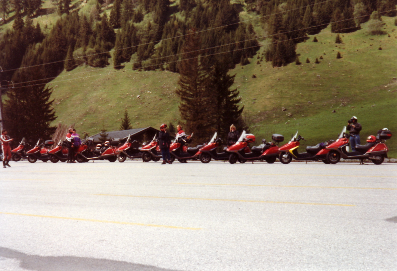 Kaprun, 12. bis 15. Mai 1994 - 3 Tages TreffenWir nahmen am ersten Rollertreffen in Kaprun teil. Organisiert wurde es von Günther Finken und Ulli aus Bochum. Für uns war das auch der Einstieg ins Clubleben nach dem deutschen Vorbild als IG zu führen.Dies hat mehrere Vorteile, keine Anmeldung, keine Clubstatuten, keine Gebühren und kein Kassier erforderlich. Unsere Tour führte uns über den Großglockner zu den Krimmler Wasserfällen. Danach ging es über den Gerlospass und über Wörgl und Kitzbühel ging es retour nach Kaprun.Teilnehmer: Günni und Ulli aus Bochum, Gabi Ziegltrum aus Kirchdorf, Frank und Regina Fitzner aus Berlin,Manfred Welzig aus Angelbachtal, Willy und Angelika Hein aus Allersberg, Ulli und Werner Lehnen aus Mölln, Klaus Dieter Röse aus Nürnberg, Martin und Edda Grüner aus BRD, und wir als einzige aus Österreich!