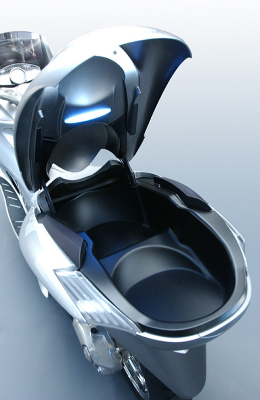 2005 präsentierte man in Tokio den E04-01. Die seriennahe Fertigung lässt uns schon etwas in die Zukunft sehen. Ein Roller mit 903ccm und Kardanantrieb. Automatik mit Schaltmodus und Stop und Go Funktion lassen keine Wünsche mehr offen. ABS und Airbag erhöhen die Sicherheit des Fahrers. Und erstmals mit Doppelscheibe ( Windschild) ! Die 17" Räder stehen dem Roller ausgesprochen gut zu Gesicht. Was am meisten auffällt, die Elegance setzt sich bis ins kleinste Detail fort. Auspuff, Felgen, alles passt zu seiner schnittigen Form. Hier gibt es auch mehr Infos und Bilder, und ein Movie!Heute haben wir 2015 und noch immer ist der E04-01 nicht am Markt. Er wird weiterhin nur als Studie in die Geschichte eingehen!